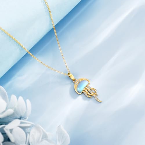 • GEHN Jewelry for Women: 14k gold jellyfish necklace come with jewelry box, gold jellyfish moonstone necklace for Mother, Wife, Mom, Grandmother, Sister on Anniversary, Birthday, Engagement, Valentine's Day, Mother’s Day, Christmas ,Graduation,thanksgiving