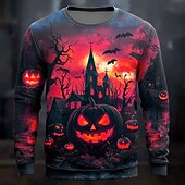 More information about Halloween Men's Pumpkin Cemetery Sweatshirt Punk Party Long Sleeve Crew Neck Vacation Red Blue Crewneck 3D All Seasons Designer