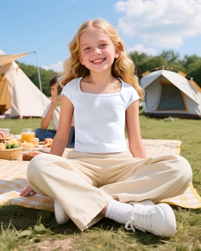 Crop Tops for Girls Short Sleeve Shirt Girls Summer Tops Square Neck Slim Fit Tops Basic Tee 6