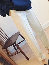 More information about Women's Dress Pants Fleece Pants Straight Fashion Streetwear Full Length Medium Waist Solid Color Pocket Comfort Breathability Soft Micro-elastic Vacation Street Daily Black White Khaki Fall Winter