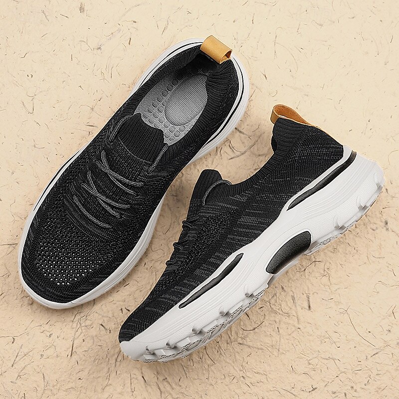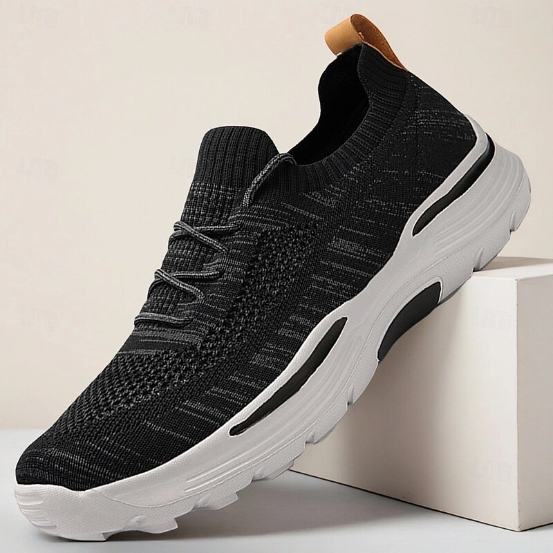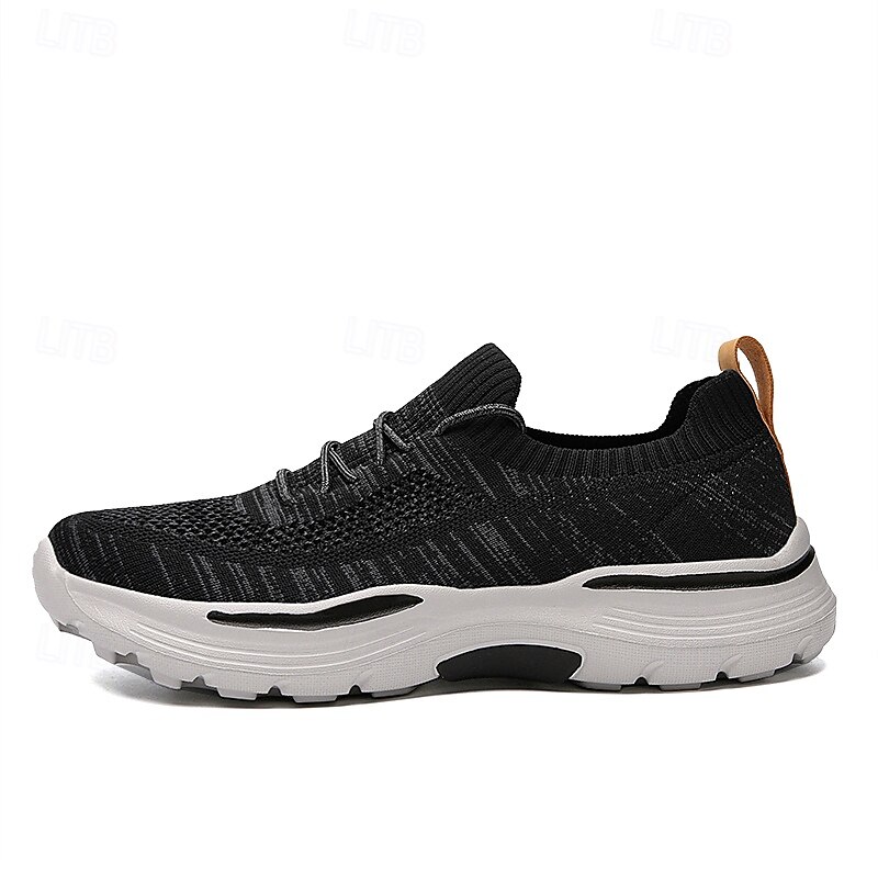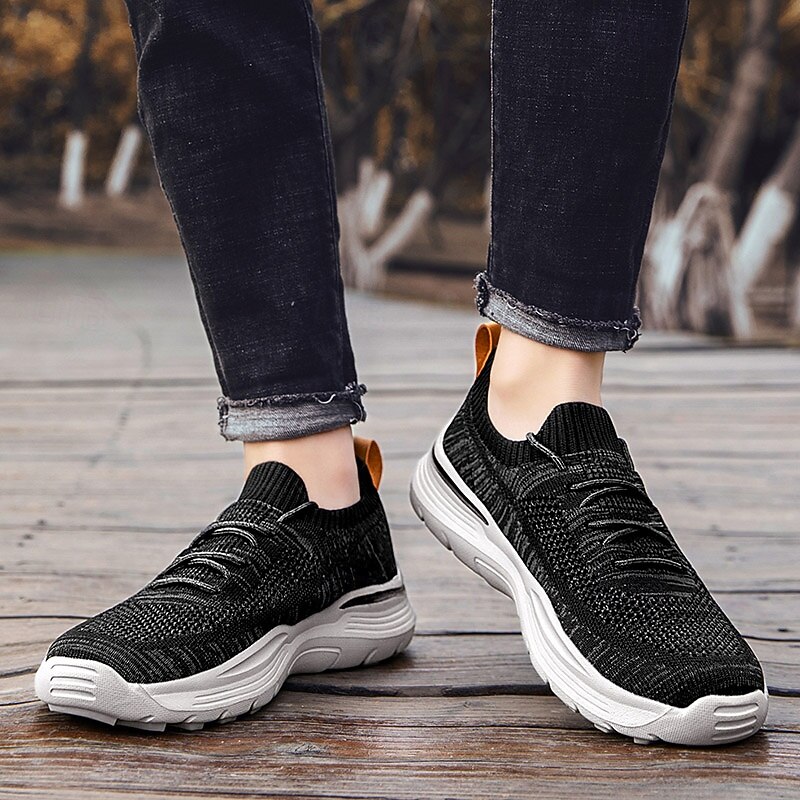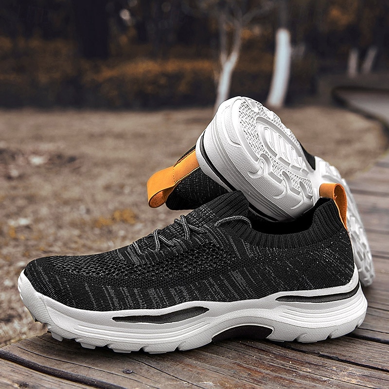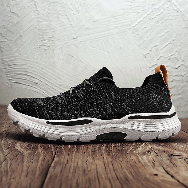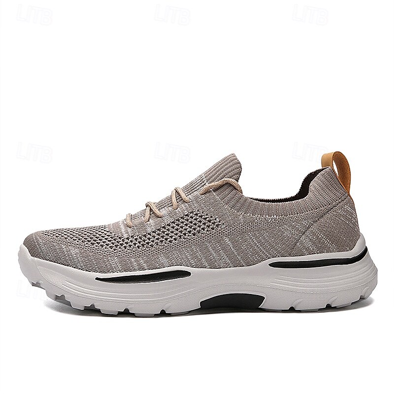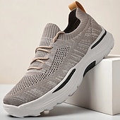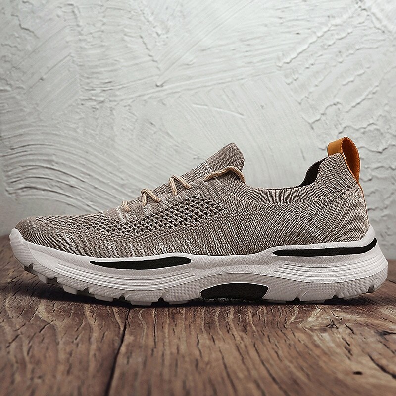 More information about Men's Beige Flyknit Running Sneakers Slip-On Athletic Shoes with Cushioned Sole Perfect for Outdoor Fitness Light Exercise and All-Day Comfort