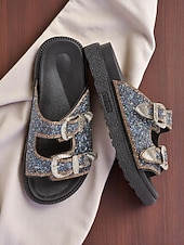 More information about Women's Buckle Platform Slide Sandals – Sparkly Open-Toe Slip-On Shoes with Rhinestone Accents for Casual & Party Wear