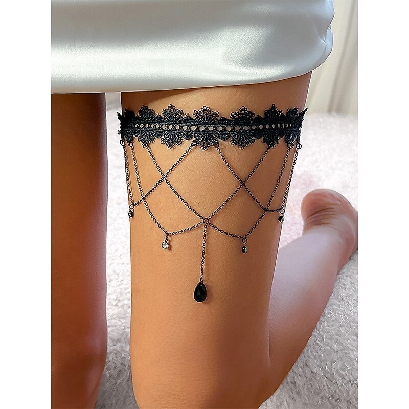 $11.99 - Women's Gothic Vintage Lace Thigh Chain with Red Crystal Chain - Elastic Thigh Jewelry for Halloween Parties, Cosplay and Vintage Occasions 2025. Shop for cheap Halloween Accessories online? Buy at lightinthebox.com on sale today!