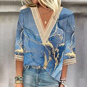 More information about Women's Blouse Marble Modern Casual 3/4 Length Sleeve V Neck Regular Tops Daily Holiday Going out Print Blue Fall