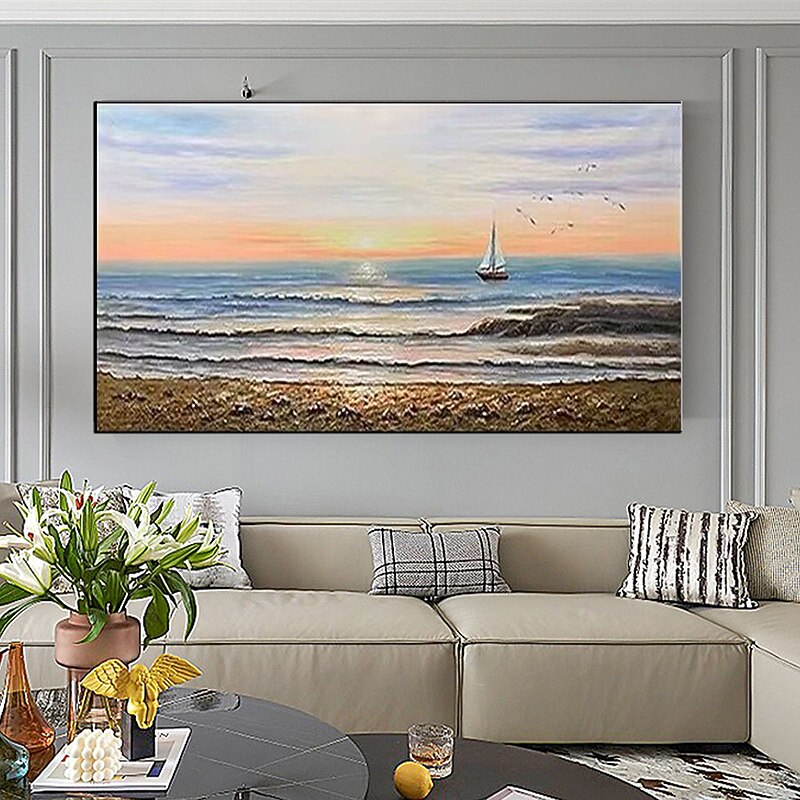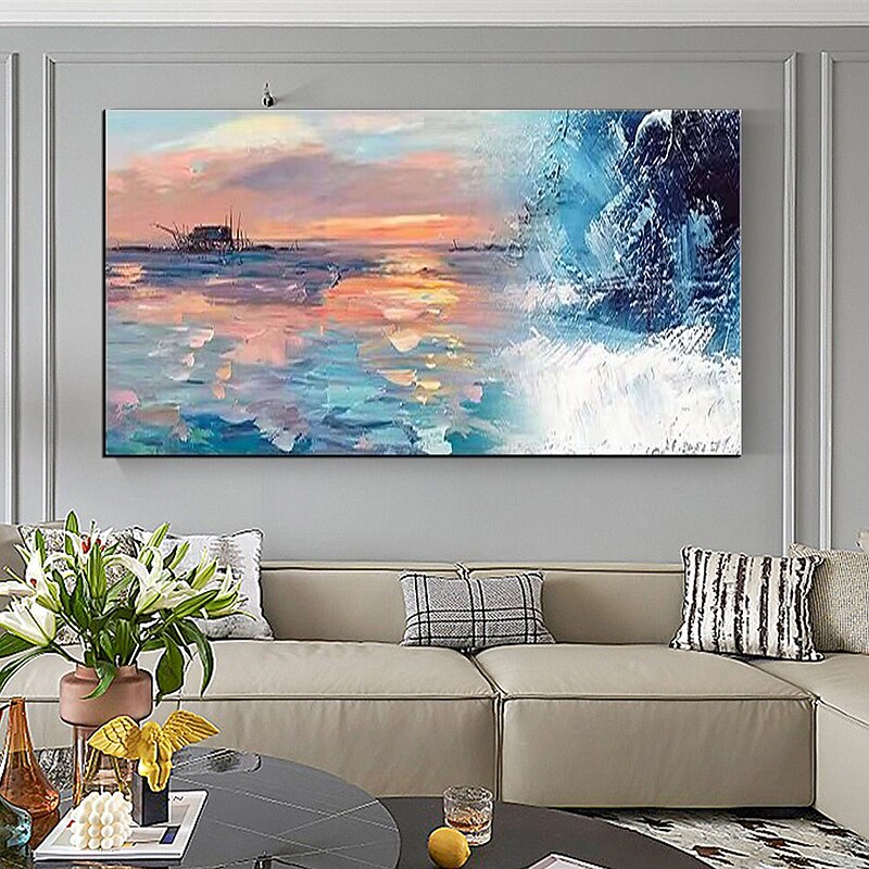 Pure Hand painted Sunset Sea Sky Ocean Beach Landscape Colorful Abstract Wall Art Extra Large Panoramic Oil Painting On Canvas 35