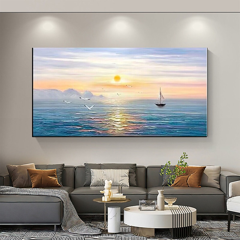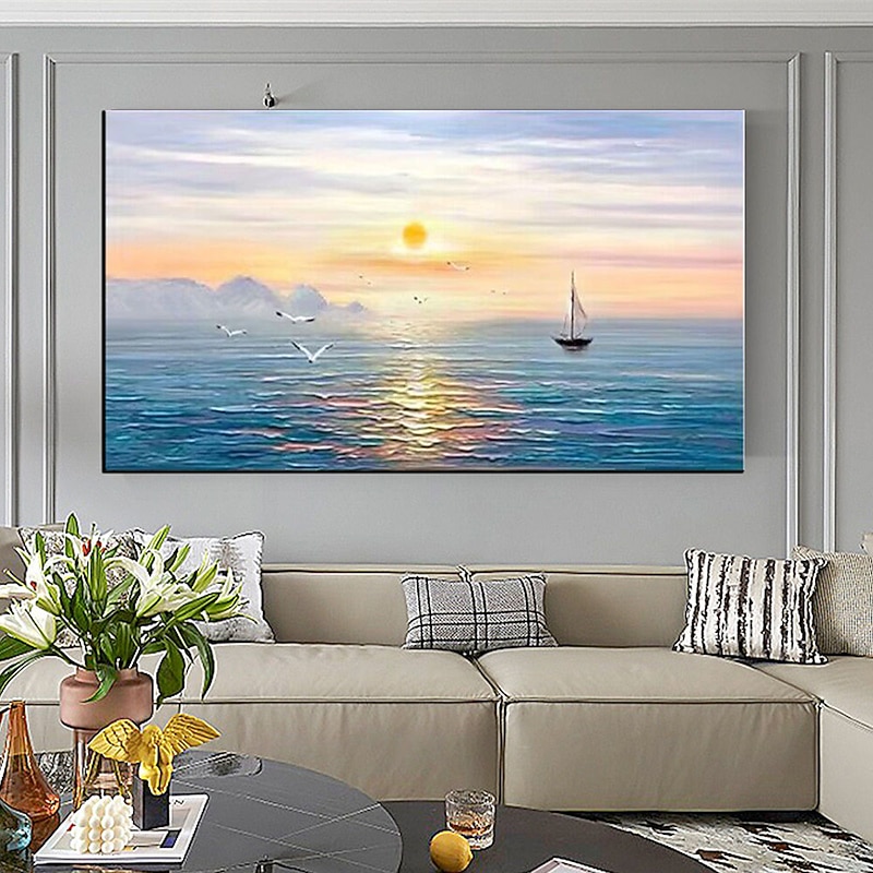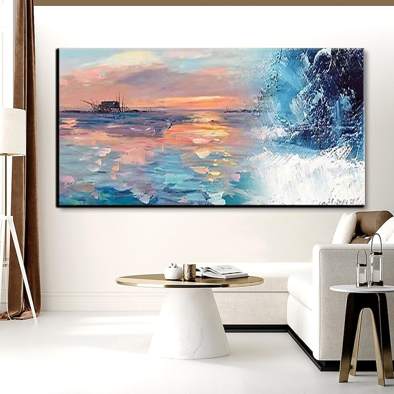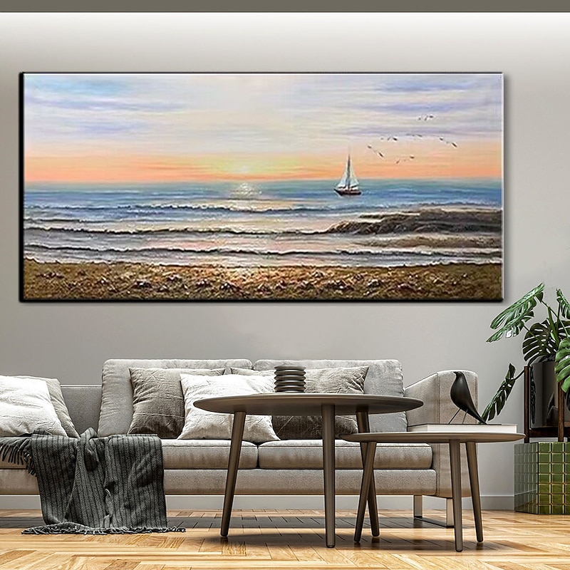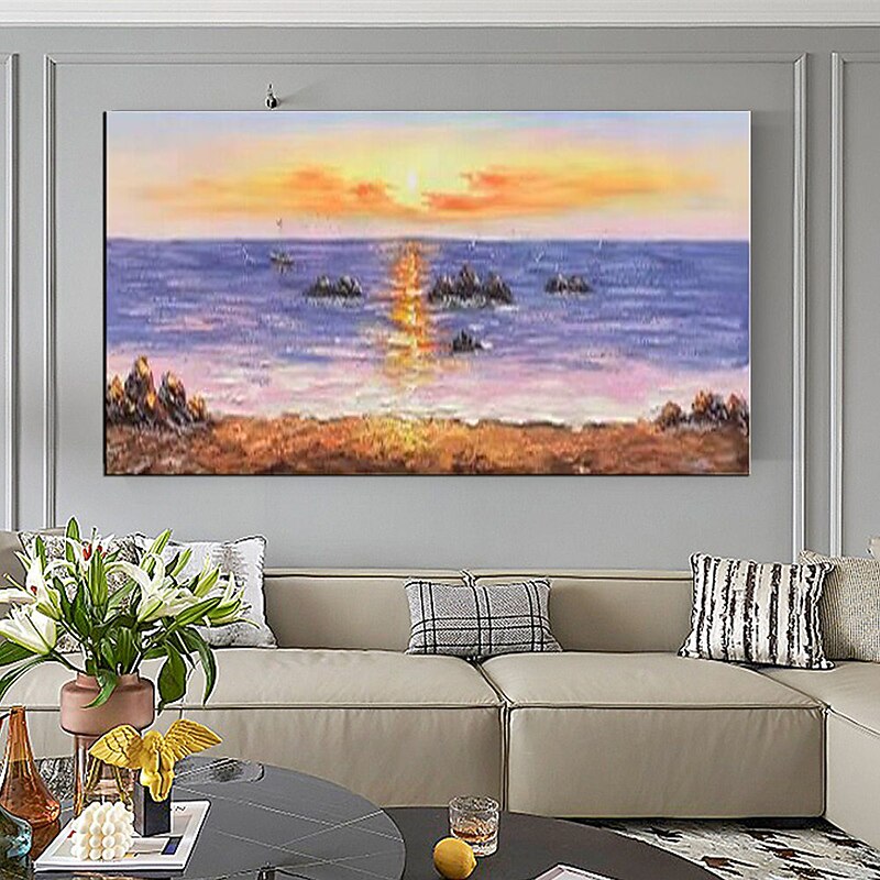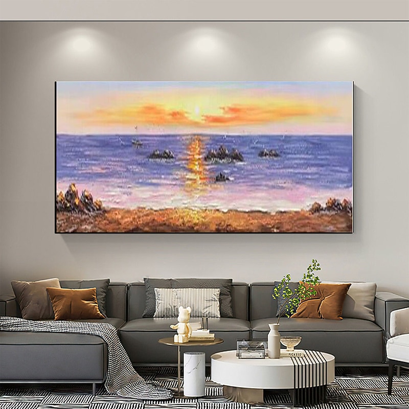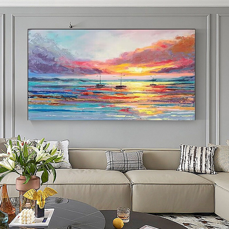 Pure Hand painted Sunset Sea Sky Ocean Beach Landscape Colorful Abstract Wall Art Extra Large Panoramic Oil Painting On Canvas 32