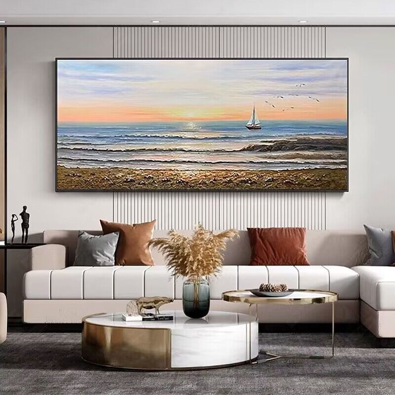 Pure Hand painted Sunset Sea Sky Ocean Beach Landscape Colorful Abstract Wall Art Extra Large Panoramic Oil Painting On Canvas 11