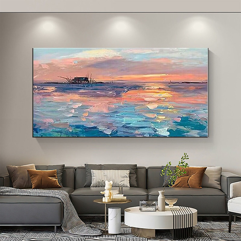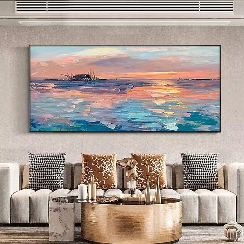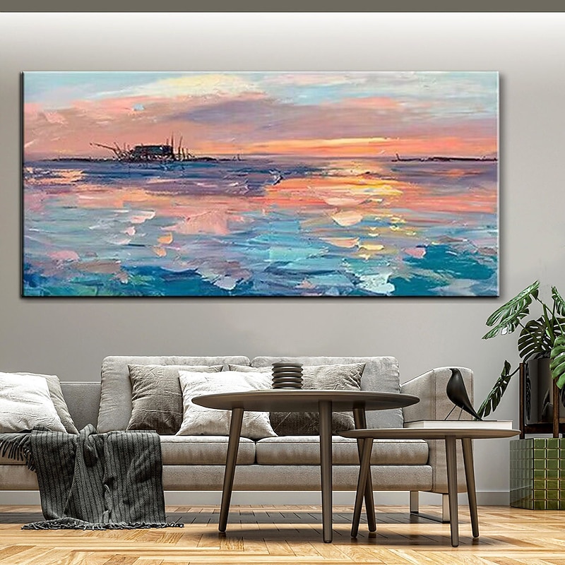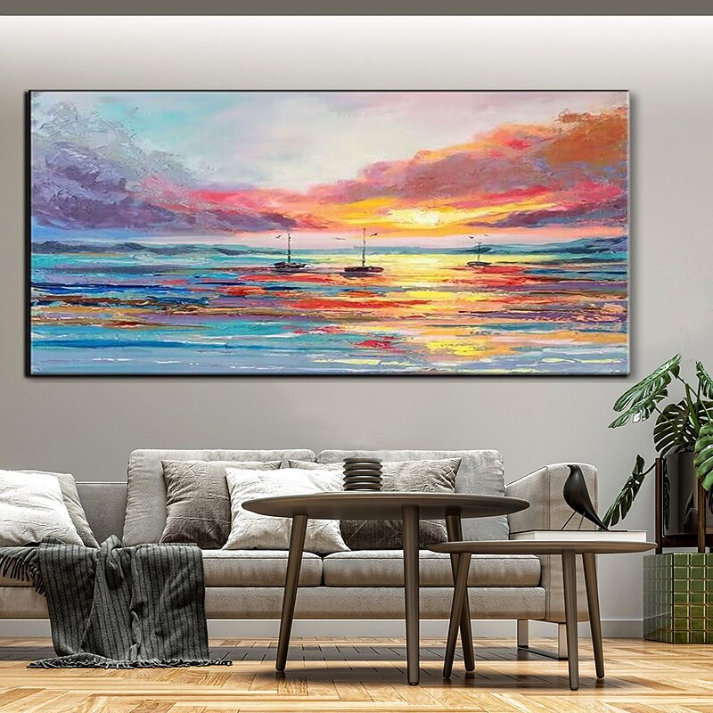Pure Hand painted Sunset Sea Sky Ocean Beach Landscape Colorful Abstract Wall Art Extra Large Panoramic Oil Painting On Canvas 24