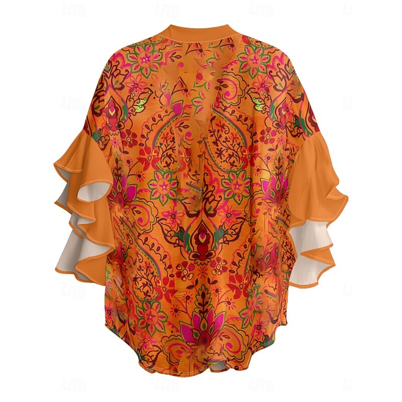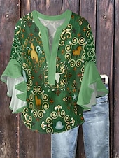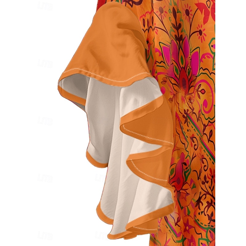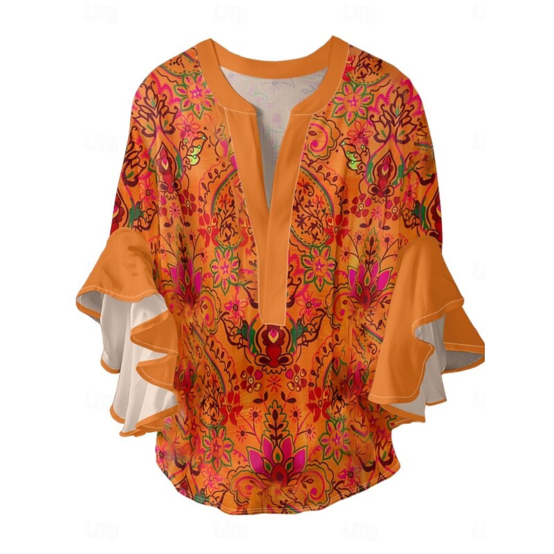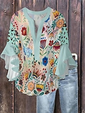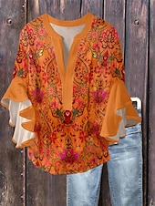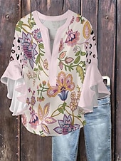 More information about Women's Blouse Floral Stylish Modern 3/4 Length Sleeve V Neck Regular Tops Daily Holiday Ruffle Print Pink Blue Orange Green Summer