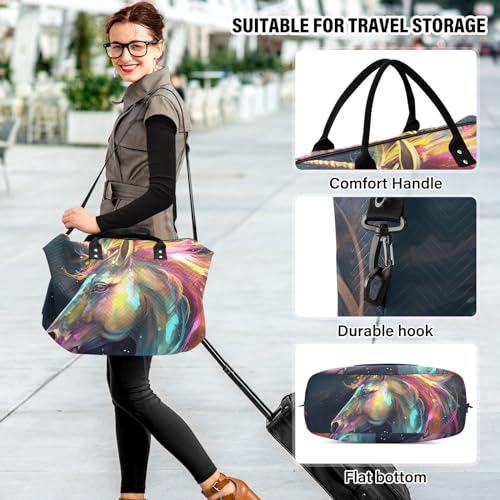 Large Travel Duffel Bag, Colorful Horse Head Sports Tote Gym Bag, Shoulder Weekender Overnight Bag for Women Men, Carry On Luggage with Toiletry Bags 7