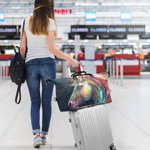 More information about Large Travel Duffel Bag, Colorful Horse Head Sports Tote Gym Bag, Shoulder Weekender Overnight Bag for Women Men, Carry On Luggage with Toiletry Bags
