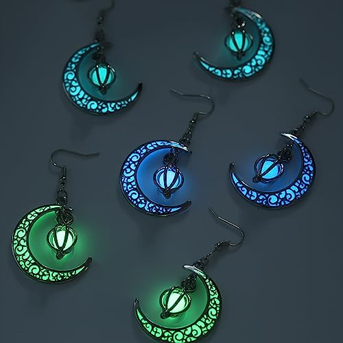 EEQQBZ Glow in The Dark Silver Crescent Moon Earrings - Glowing Blue Moon Charm - Magical Fantasy Fairy Glowing Earrings - Glow Jewelry 7