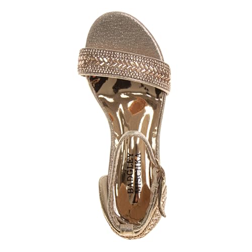 HOT ! Badgley Mischka Heel Dress Pumps with Ankle Straps - Kids Fashion Dressy Open Toe Block Heel Shoes for Girls - Rose Gold (Sizes 6 Big Kid)