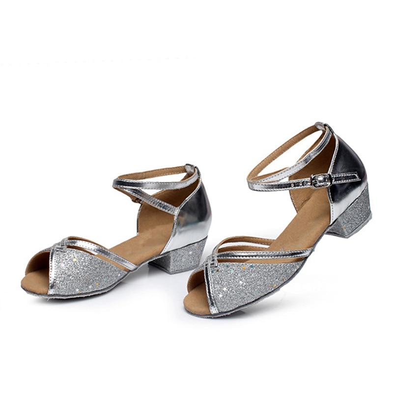 Highlights [Fabric & Structure] : Crafted with a striking paillette upper, these women's dance shoes blend shimmer and durability. The synthetic material ensures a dazzling effect that captures attention under stage and spotlight conditions. [Form & Fit] : Designed with a low heel, the shoes prioritize stability and effortless movement, essential for both beginners and seasoned dancers. [Design Highlights] : Featuring a sparkling silver glitter finish, these shoes shimmer with elegance. The adjustable ankle strap with buckle closure offers a secure and customizable fit. A soft fabric lining enhances comfort, allowing you to dance for hours. [Occasions] : Perfect for Latin, ballroom, and line dance practice, these shoes are a must-have for any dance enthusiast. They are equally suitable for special occasions where style and stability are paramount. [Size Range] : Available in multiple sizes—from US3.5 to US9—they cater to a variety of feet, ensuring a perfect fit for every dancer.