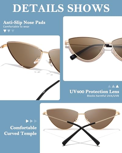 • Retro Cat Eye Shades: These classic fashion cat eye sunglasses give you a timeless look and a futuristic take on the triangle shape. Designed for the fashion-conscious woman, they are suitable for all occasions and weather conditions.