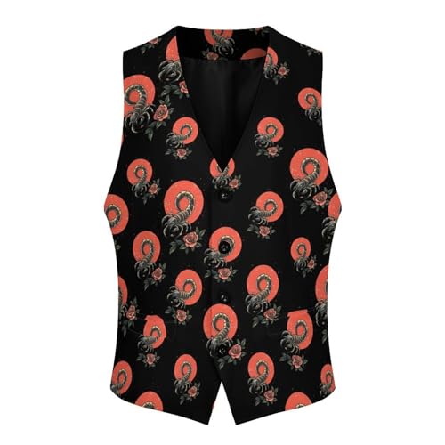 Vintage Scorpion Rose Suit Vest for Men Slim Fit Tuxedo Waistcoat Button Down V Neck Business Dress Coat 1