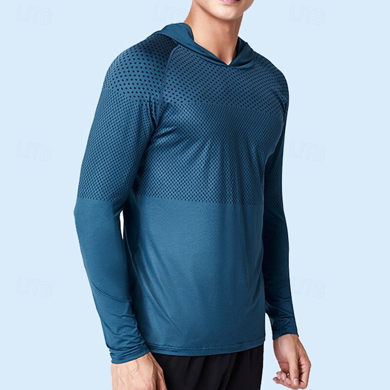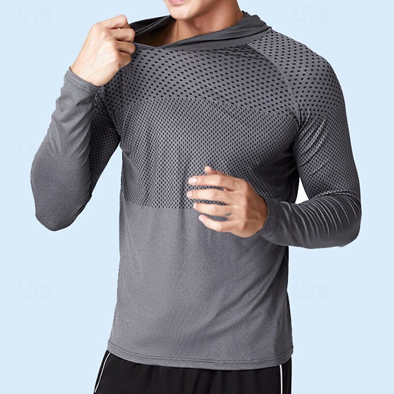 More information about Men's Performance Shirt Sport Tee Shirt Long Sleeve Hooded Top Outdoor Quick Dry Sweat wicking anti-odor Breathable Polyester Dark Grey Blue Light Grey Fishing Tennis Running