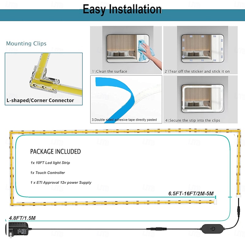 $23.99 - COB LED Vanity Mirror Light Kit, 1-4M/3.2-13ft 420LED/m Adjustable Strip Light, Dimmer & Power Supply COB Strip Lights for Mirror, Closet, Kitchen, Cabinet Lighting 2025. Shop for cheap COB Strip Lights online? Buy at lightinthebox.com on sale today!