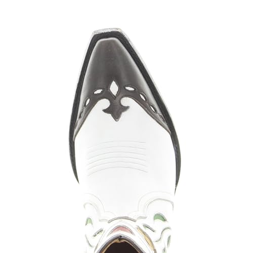 • PREMIUM CRAFTSMANSHIP: Hand-crafted Western boots featuring intricate floral embroidery, hearts, and star details on white leather with brown accents and a side zipper closure