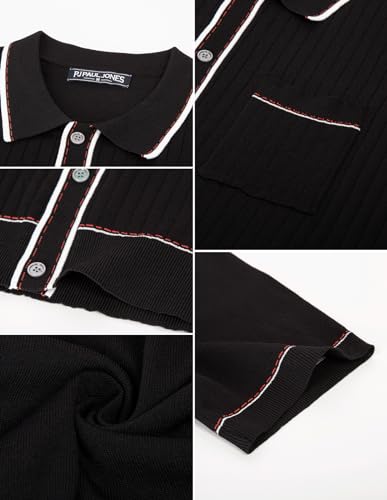 PJ PAUL JONES Mens Knit Shirts Vintage Retro Short Sleeve Button Down Vacation Polo Shirts 4