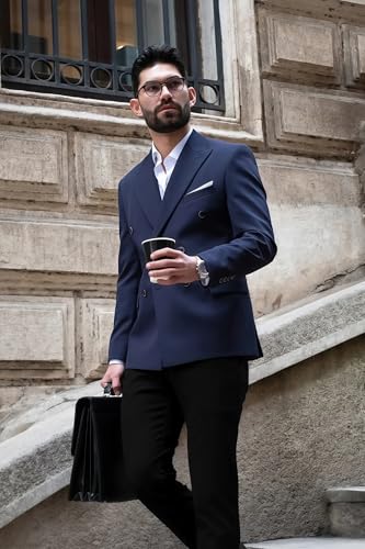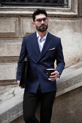 • 【Premium Fabric Blend】 Our slim fit double breasted blazer are made from a premium blend of 80% Polyester, 20% Viscose for unrivaled comfort and flexibility. The fabric, reinforced with durable stitching, retains its shape and elegance over time, ensuring you look impeccable in every situation.
