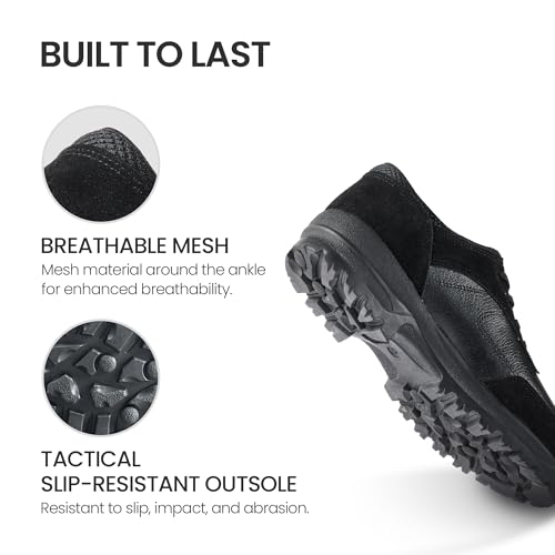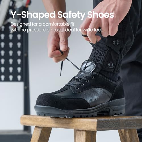 • INNOVATIVE COMFORT SAFETY DESIGN: Combines the durability of safety shoes with the comfort of sneakers, featuring ankle cushioning and breathable mesh for enhanced airflow and comfort.