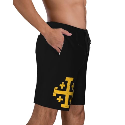 Crusader Cross of Jerusalem Mens Swim Trunks Quick Dry Board Shorts 7" - Hawaii Beach Swimwear 1
