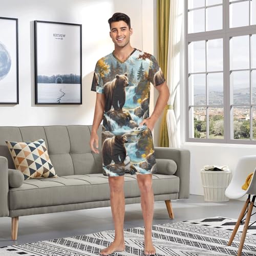 • ADJUSTABLE FIT: This Men's pajamas set comes with pajama shorts with an adjustable elasticated waistband for a custom fit. Drawstring closure makes it easy to put on and take off.