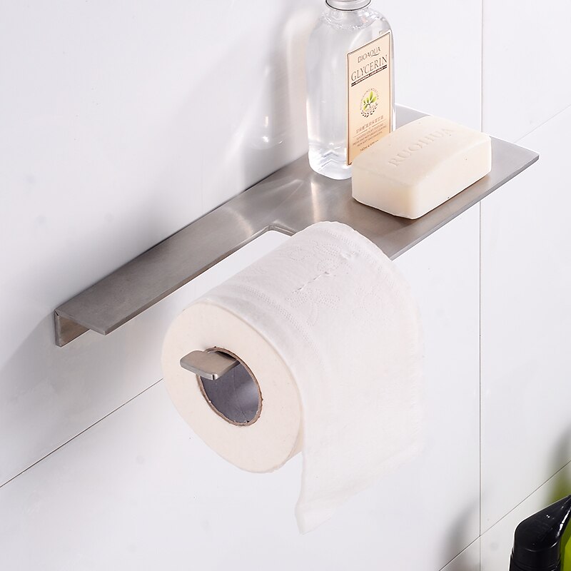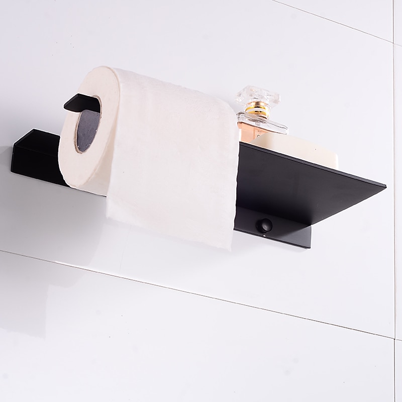 Stainless Steel Toilet Paper Holder New Design Tray Paper Roll Holder Bathroom Shelf Wall Mounted Matte Black 1pc 11