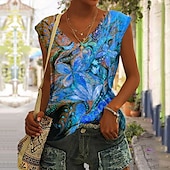 HOT ! Women's Camisole Tank Top Basic Floral Print Sleeveless Regular Tops V Neck Casual Holiday Red Blue Orange Green
