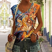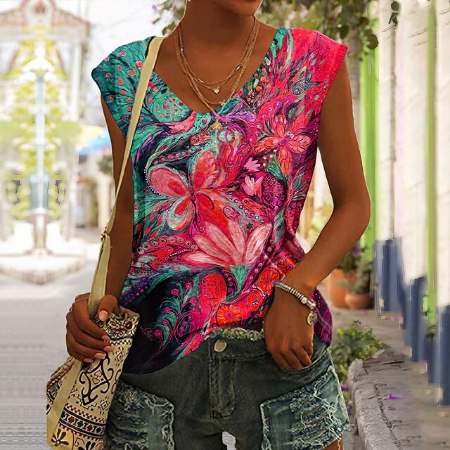 Highlights [Fabric] Crafted from lightweight and breathable polyester, this women's tank top offers comfort for all-day wear. The fabric features micro-elasticity, providing a relaxed fit that allows for easy movement. [Fit] This top showcases a regular fit with a soft V-neckline and a sleeveless design that is perfect for warm weather. It offers a loose, laid-back charm ideal for both style and practicality. [Design Highlights] The vibrant tank top is adorned with a colorful abstract floral print in bold reds, pinks, and greens, creating a lively and eye-catching look. The soft V-neckline adds a touch of femininity, enhancing its casual yet stylish aesthetic. [Occasions] Suitable for holidays, casual outings, and relaxed gatherings, this top is a versatile addition to any wardrobe. Its lively design makes it perfect for making a statement during summer events or casual days out. [Size Range] Available in a variety of sizes, from S to 2XL, catering to a broad range of body types. This ensures an inclusive fit for diverse customers seeking comfort and style.