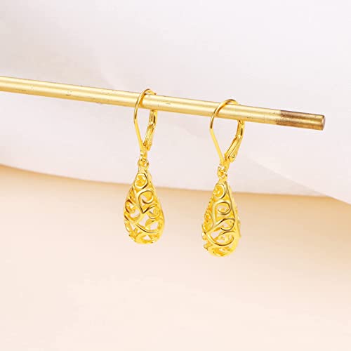 HOT ! Sterling Silver Leverback Dangle Earrings for Women Teardrop Filigree 14K Gold Plated Dangly Earrings Mother’s Day Gift