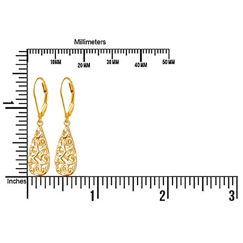 Sterling Silver Leverback Dangle Earrings for Women Teardrop Filigree 14K Gold Plated Dangly Earrings Mother’s Day Gift 4
