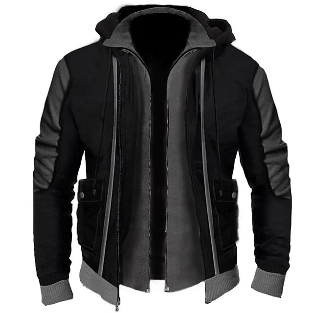 More information about Men's Full Zip Hoodie Zip Up Hoodie Sweat Jacket Outerwear Black Light Grey Dark Gray Hooded Color Block Zip Up Zipper Pocket Sports & Outdoor Daily Sports Streetwear Casual Athletic Spring & Fall