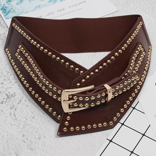 Women Elastic Wide Punk Style Studded Belt PU Leather Rivet Cinch Waist Belt 7