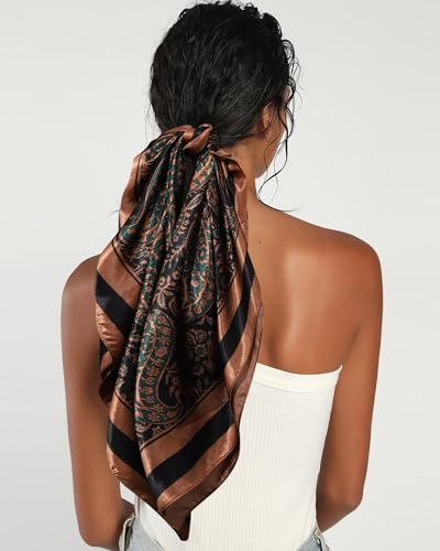 • LARGE HAIR SCARF MEETS YOUR WEARING NEEDS: The silk scarf for women size is 35 x 35 inches, which can meet your different wearing needs. It is very suitable whether worn on the head, body, or as an accessory. Beautiful prints add glamour to your outfit