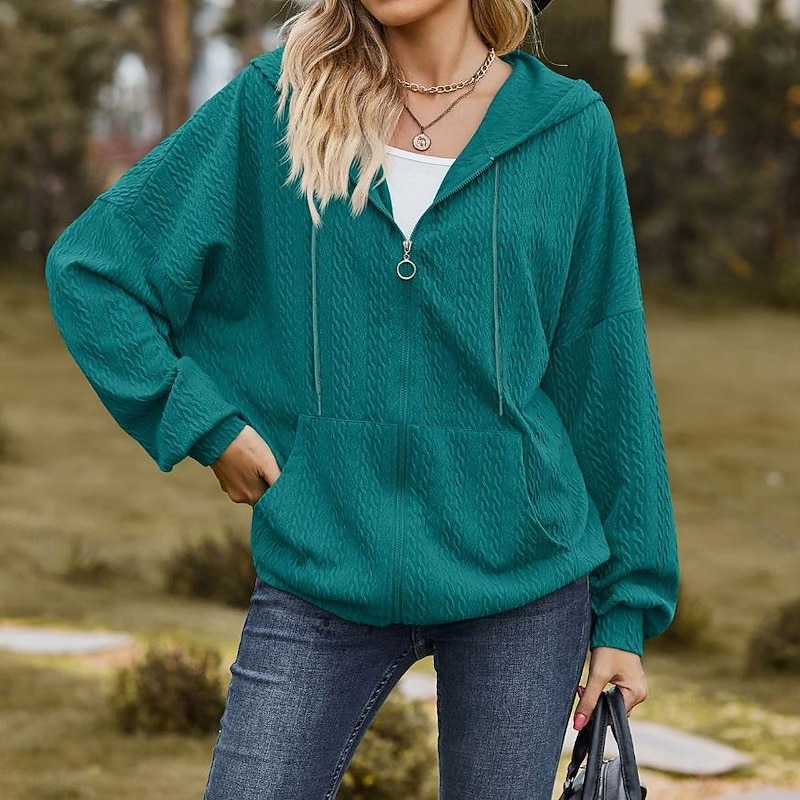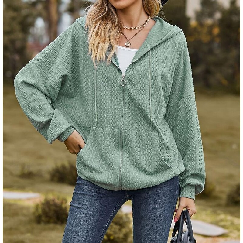 More information about Women's Zip Up Hoodie Sweatshirt Modern Plain Dailywear Sports Hooded Zipper Pocket Loose Fit Long Sleeve White Red Blue Green Fall Winter
