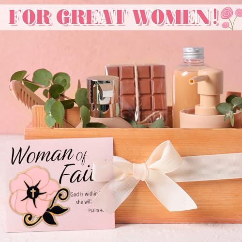 Hoteam Christian Pins for Woman of Faith Pins with Cards Flower Enamel Brooch Gift God Is Within Her She Will Not Fall 5