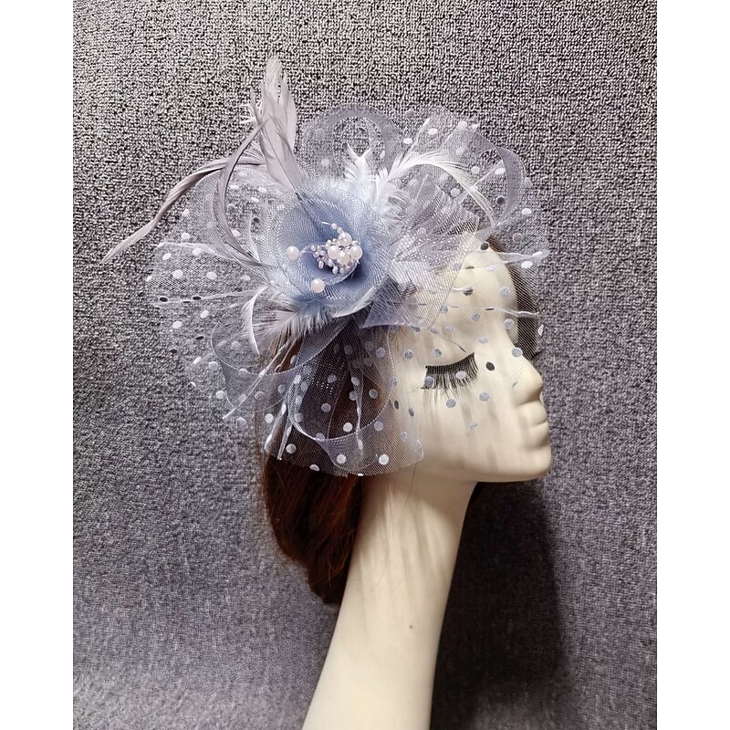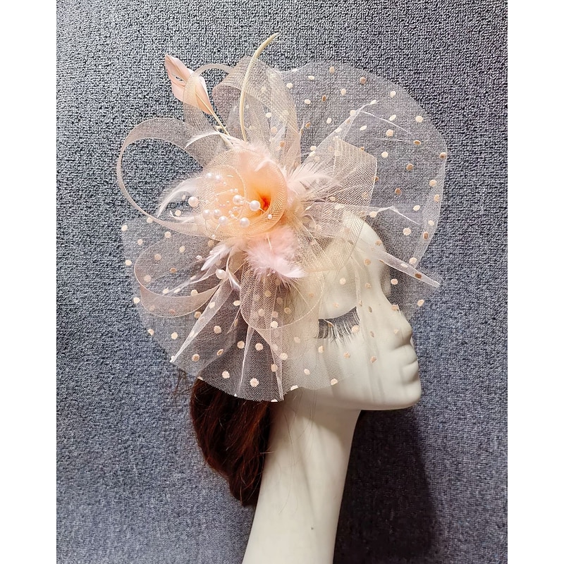 Fascinators Net Veil Hat Wedding Ladies Day With Feather Pearl Headpiece Headwear 1
