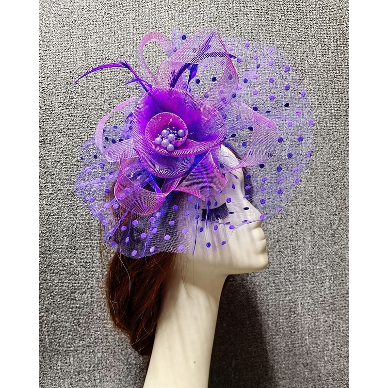 Fascinators Net Veil Hat Wedding Ladies Day With Feather Pearl Headpiece Headwear 8