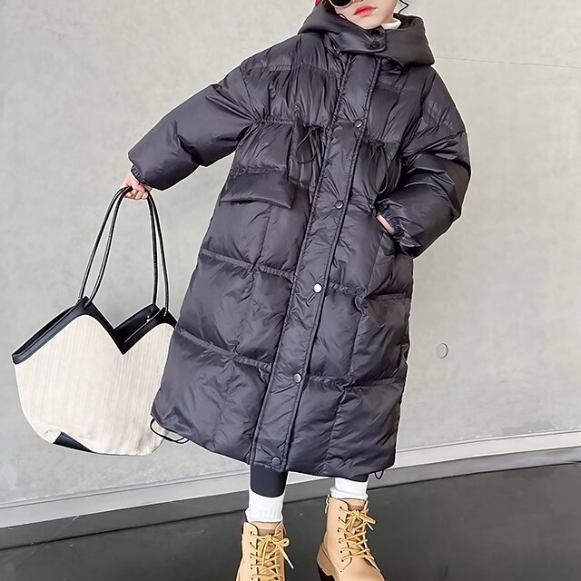 HOT ! Kids Girls' Down Coat Kids Puffer Jacket Active Pocket School Coat Outerwear 4-13 Years Winter Black Purple
