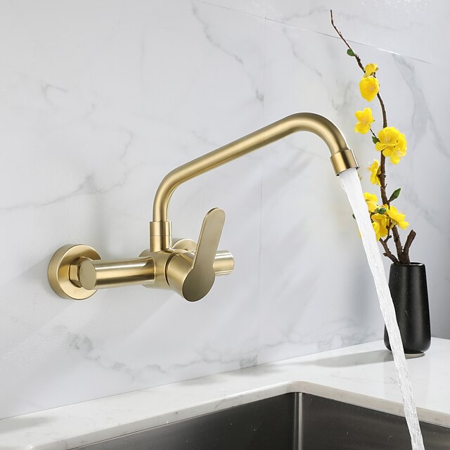 Kitchen faucet - Single Handle Two Holes Brushed Gold Pot Filler Wall Mounted Contemporary Kitchen Taps 1