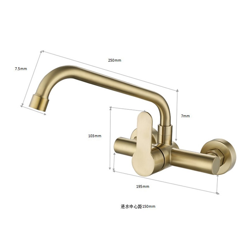 Kitchen faucet - Single Handle Two Holes Brushed Gold Pot Filler Wall Mounted Contemporary Kitchen Taps 7