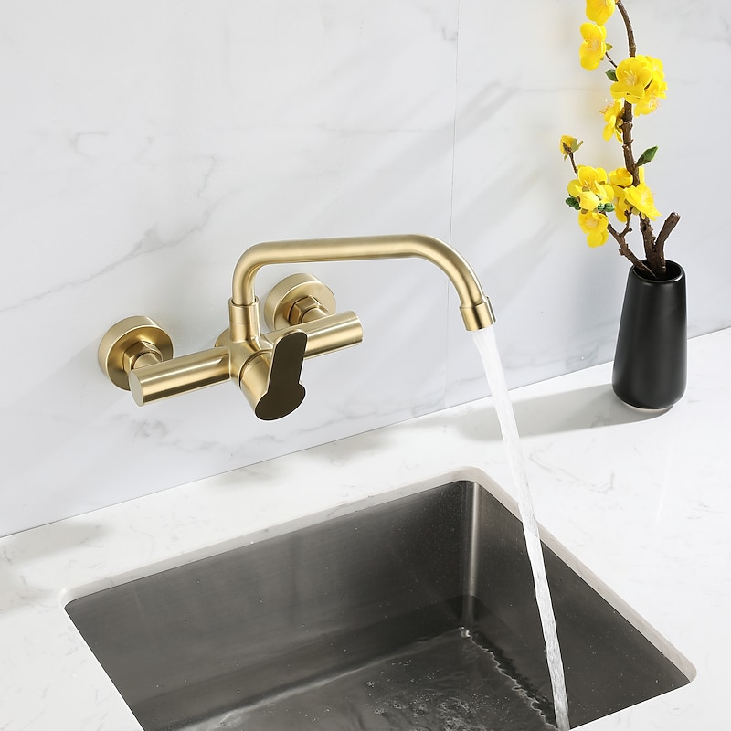 Kitchen faucet - Single Handle Two Holes Brushed Gold Pot Filler Wall Mounted Contemporary Kitchen Taps 2