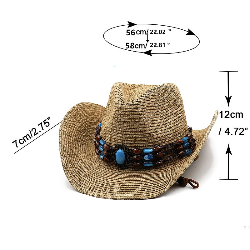 : Crafted from high-quality straw, this cowboy hat combines durability and breathability, making it an excellent accessory for warm weather. The natural straw provides structure while ensuring comfort, perfect for extended wear.