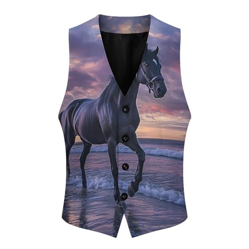 Wild Horse on Beach Men's Suit Vest Slim Fit Business Dress Party Pattern Waistcoat Vest Top 6