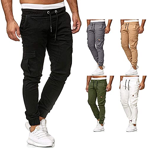 HOT ! Mens Casual Cargo Jogger Pants Gym Slim Fit Elastic Waist Pants Athletic Running Sweatpants with Pocket