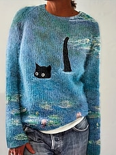 More information about Women's Sweater Pullover Daily Casual Graphic Animal Color Gradient Ribbed Crew Neck Knitted Print Long Sleeve Regular Tops Knit Outdoor Weekend Blue Fall Winter