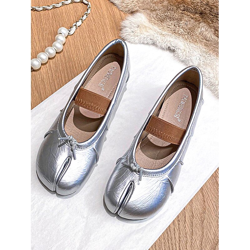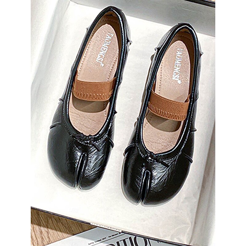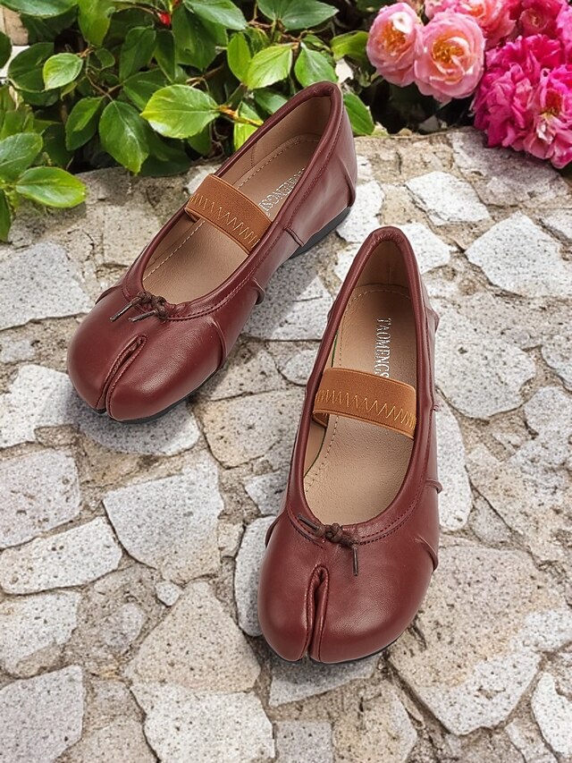 HOT ! Women's Brown Split-Toe Flat Mary Janes with Elastic Strap – Retro Leather Shoes for Everyday Dates and Weekend Outings