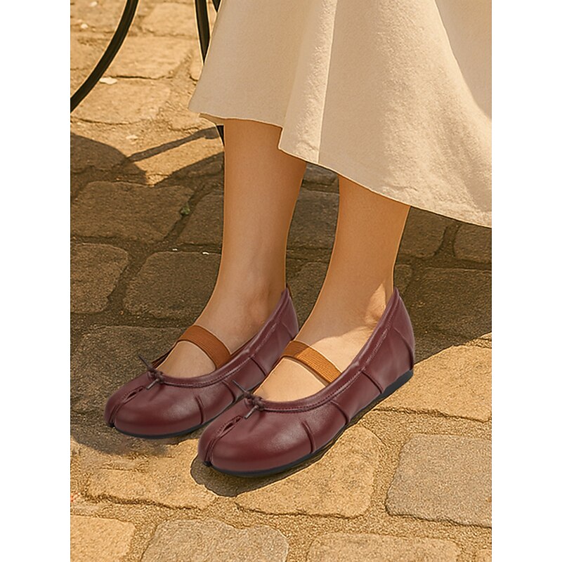 More information about Women's Brown Split-Toe Flat Mary Janes with Elastic Strap – Retro Leather Shoes for Everyday Dates and Weekend Outings